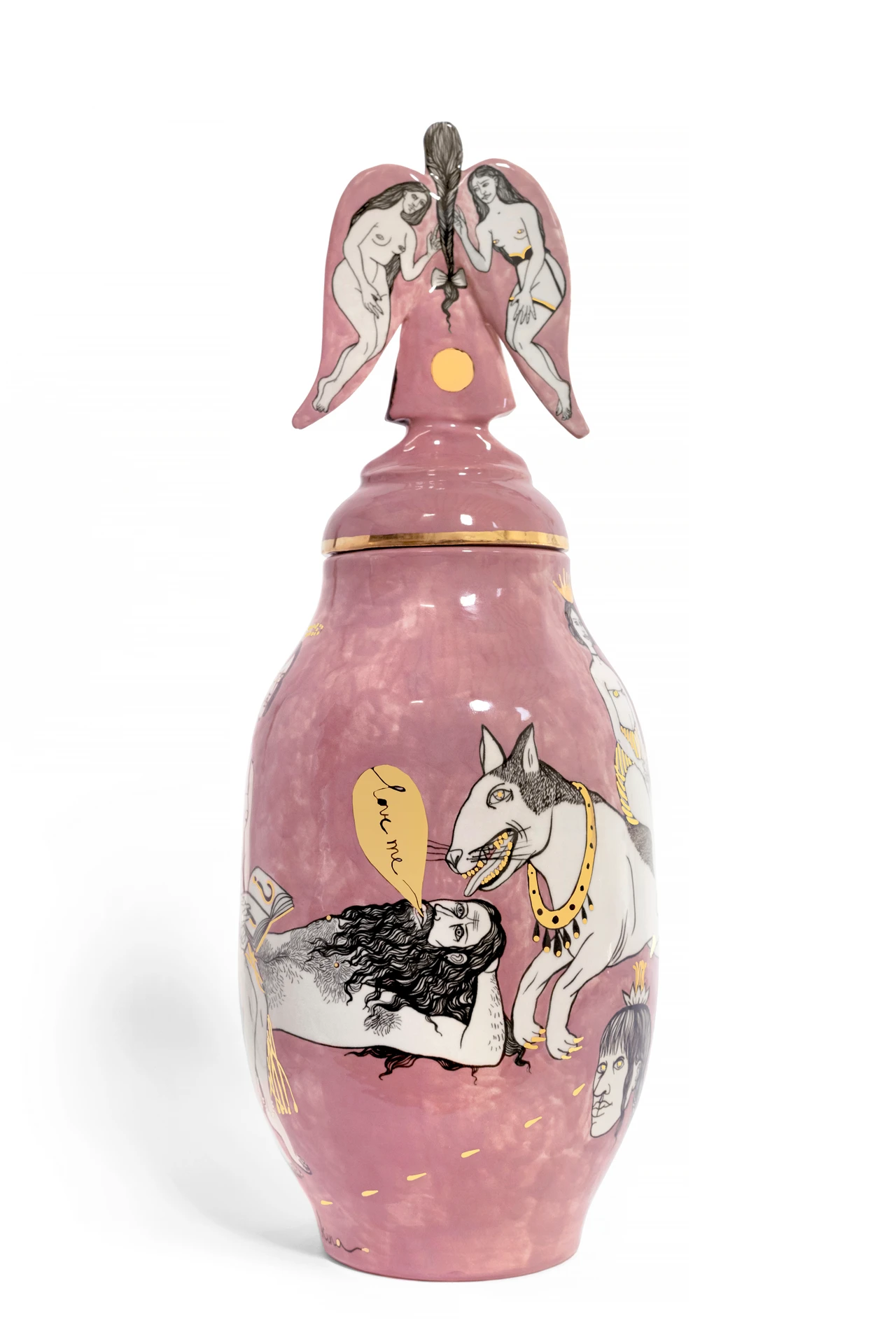 Ceramic vase, underglaze drawing, gold, triple fire.