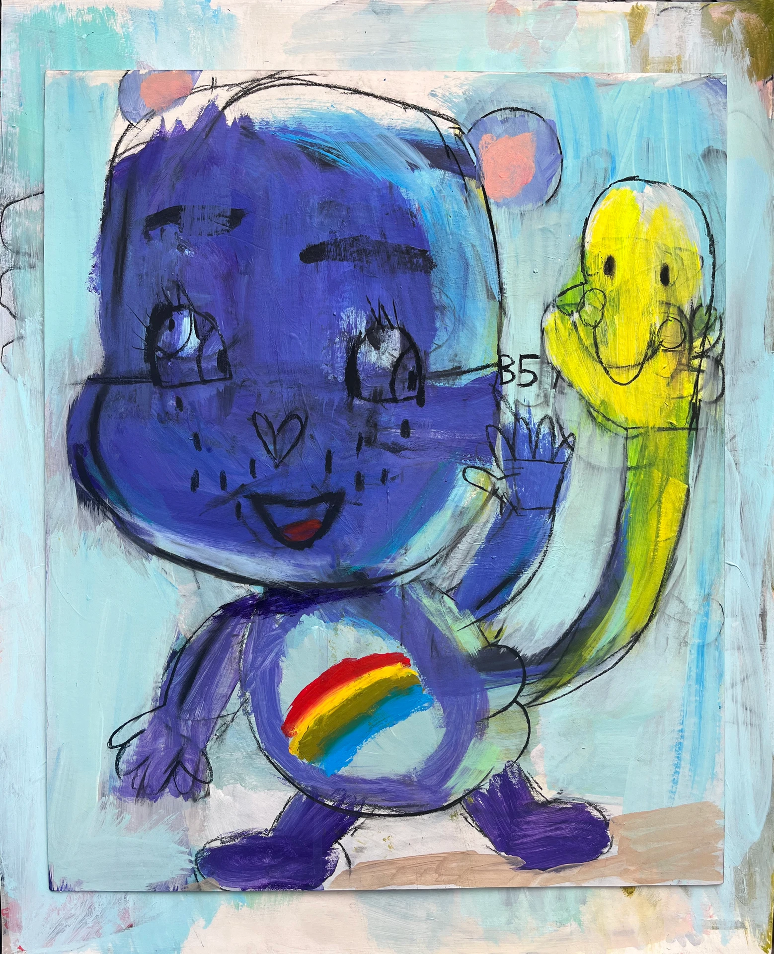 Acrylic and conté pencil on cardboard